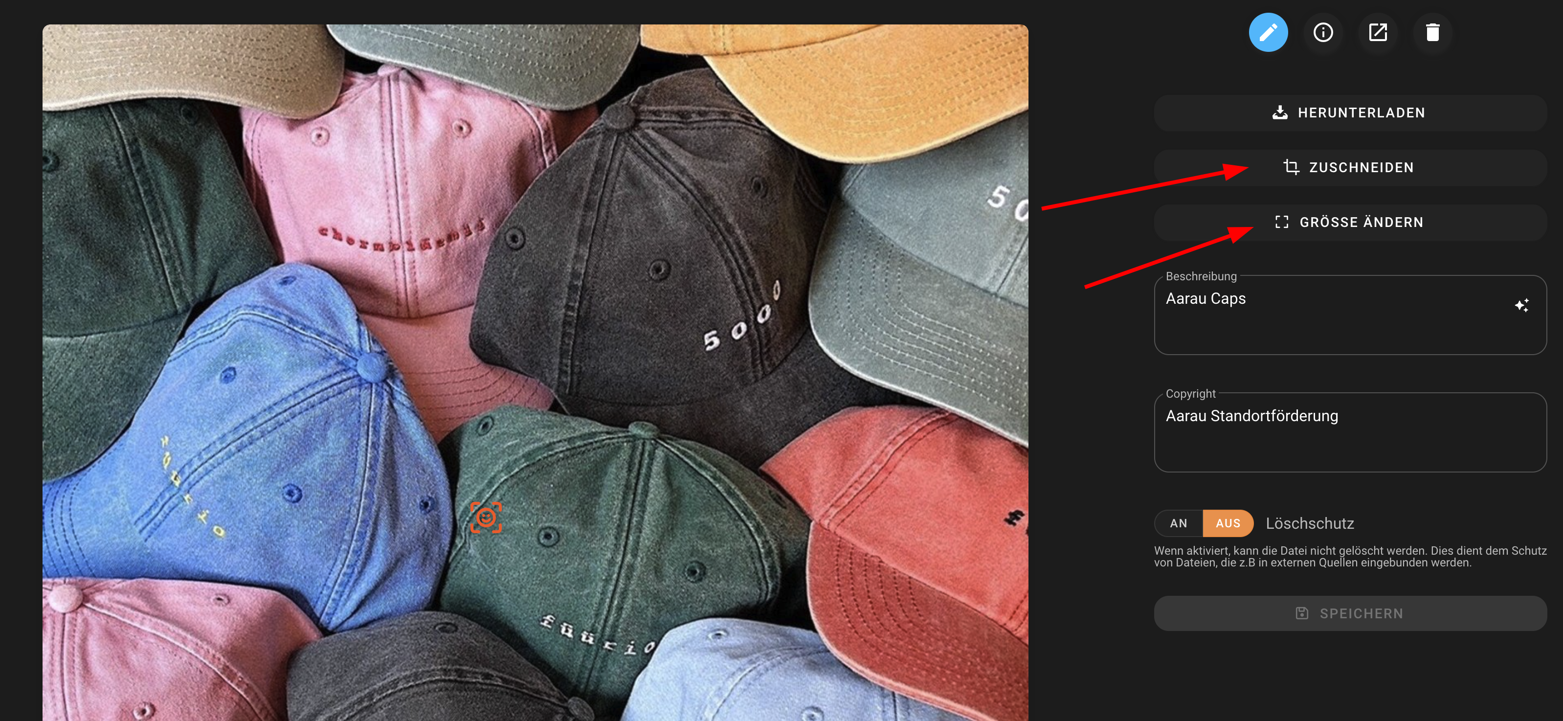 Mit dem Toggle Löschschutz (über den Dateimanager in der Flyo-Oberfläche) kann verhindert werden, dass ein Bild versehentlich gelöscht wird, obwohl es unabhängig von einem Inhalt z.B. im Footer einer Website verwendet wird.